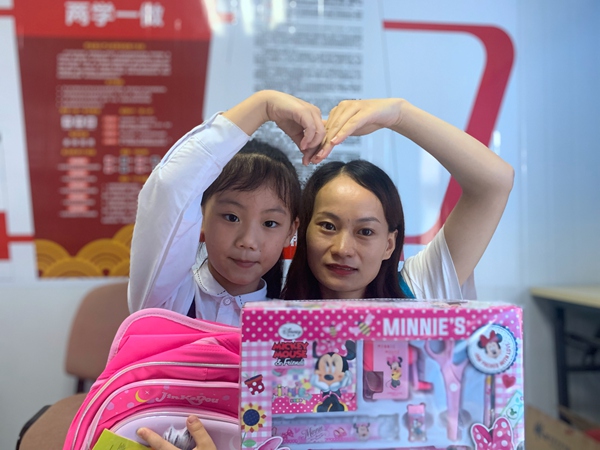 孩子得到开学礼包很开心。中建二局西南分公司供图