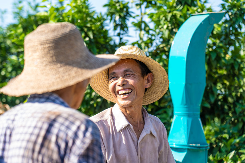 柑橘倒是种上了,可是起初,品质一般。要怎么种才能又大又甜呢?福德村请来柑橘专家,考察土壤情况,最后决定用玉米秆粉碎成末、堆放在果树下的方法,让土地更肥、柑橘更香。