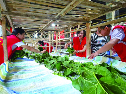 随后,团区委一行到脱贫户余绍云家进行走访,宣传乡村振兴等政策,了解当前产业发展面临的问题和困难,帮助农户想办法,找出路。之后,全体党员干部开展了志愿服务活动,参与体验采桑养蚕,了解了当地蚕桑产业发展现状。