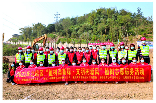 为助力北碚区生态田园都市区建设,3月11日上午,北碚团区委联合中铁建生态环境有限公司、重庆青年职业技术学院团委开展了2022年北碚区“植树添新绿·文明树新风”植树志愿服务活动。