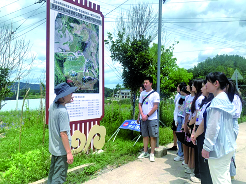 随后,同学们来到八一村调研乡村振兴农旅融合的具体举措。同学们了解到,当地利用已建成的万亩高标准农田,探索“稻田+校外实践、民宿、艺术”的乡村旅游新模式,使村容村貌焕然一新,为村民增收致富开辟了新途径。