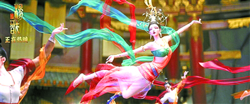 而除了太极图大战,片中婉罗跳洛神赋的飞天舞也是备受观众好评的一场戏:瀛洲仙乐坊,仙台楼阁之上,花瓣纷飞,众仙女们轻纱漫舞,玉动珠摇。“翩若惊鸿,宛若游龙”的飞天美态,搭配歌手银临婉转优美的动情吟唱,效果惊艳。观众对这场戏评价颇高,“敦煌壁画的美人从墙上飞出来了”“飞天舞、洛神赋、敦煌壁画等场景将中国传统文化的美诠释到了极致”。