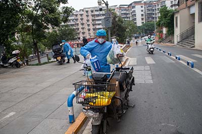 “我没有特意记录每天跑了多少趟。我把这些居民都当成了自己的亲人,想到只要我闲下来他们就可能要挨饿,就还是尽力多跑一点吧。”