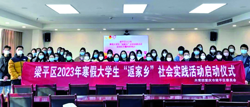 为深入学习贯彻习近平总书记关于青年工作的重要论述,全力做好大学生“返家乡”社会实践,帮助青年学生不断提升社会化能力,建立在外高校学子与家乡联系的制度化渠道,近日,团梁平区委举行了2023年寒假大学生“返家乡”社会实践活动启动仪式。