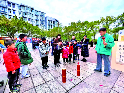游乐区,套圈活动进行得如火如荼;围棋区的棋桌上,复杂烧脑的待解棋局让大家感受到围棋的神秘魅力;美术区的画架前,大家五人成队,共同为空白的画布填涂绚丽色彩……而另一边的空地上,身着跆拳道服的小朋友们正列好队形,随着音乐节奏“挥拳出击”,送上了一场激动人心的快闪表演。现场处处充满欢声笑语,热闹非凡。