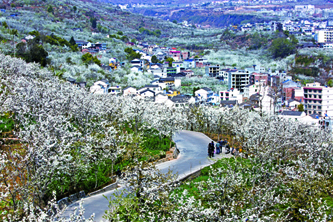 漫步梨园,漫山遍野洁白如雪的梨花,在阳光的掩映下银光闪闪。有的已完全绽放,洁白的花瓣围着紫红粉嫩的花蕊;有的刚刚鼓出花苞,绿茸茸的花萼托着银星点点的花蕾。微风拂来,花枝随风而动,飘落阵阵花雨。林间,游人沿着登山步道慢慢观赏梨花风韵,感受梨乡绮丽美景。