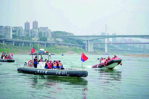 山城雪豹水域救援志愿服务体验中心“正式揭牌”,并开展了综合应急救援演练。