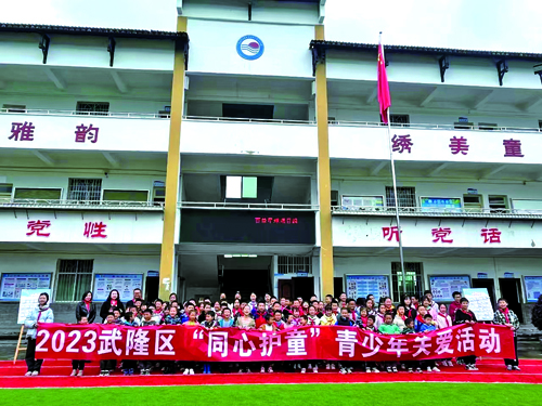 团武隆区委联合四川省青少年发展基金会百益星球项目组于5月11日在大洞河乡中心校开展“同心护童”青少年关爱活动