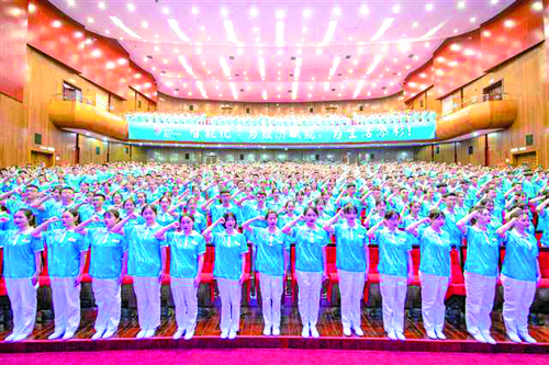旌旗,团徽,激扬起中国红,全市10万多个团组织、180多万团员目光汇聚,谱写牢记嘱托、勇担使命,开新局的新篇章。这是重庆青年深入学习宣传贯彻党的二十大精神,向第二个百年奋斗目标进军的关键时刻召开的一次青春大会;是学习贯彻市委六届二次全会精神,加快建设青年发展型城市,动员全市青年在奋力推进新时代新征程新重庆中唱响“青春建功新重庆”最强音的誓师大会;是系统总结改革发展成果,奋力开创重庆共青团事业发展新局面的动员大会。