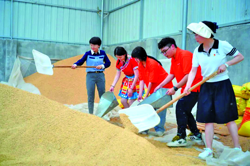 近日,重庆第二师范学院经济与工商管理学院“三下乡”民族团结实践团走进重庆市黔江区白石镇“社会课堂”,上好实践必修课。实践团沿着田间小路来到重庆市黔江区八八八农机专业合作社进行学习。新农人张叔叔讲述、演示了稻谷清理、砻谷、碾米的过程。师生们纷纷拿上簸箕在张叔叔指导下开始了“砻谷人”的工作。