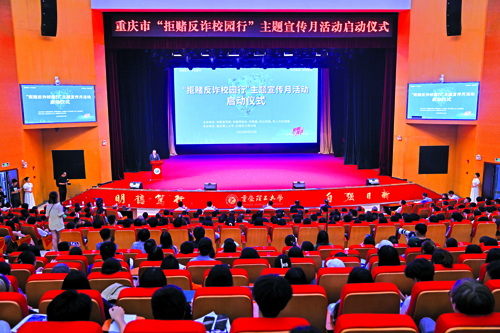 9月18日下午,重庆市“拒赌反诈校园行”主题宣传月活动启动仪式在重庆理工大学花溪校区举行。公安民警现场开展拒赌反诈专题讲座活动,给广大师生送上开学拒赌反诈指南,筑牢校园拒赌反诈“安全门”。