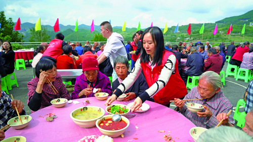 为深入贯彻落实党的二十大精神,大力弘扬中华民族敬老传统美德,丰富结对帮扶村老年群众精神文化生活,营造尊老、敬老、爱老、助老的社会氛围,充分发挥共青团青春建功乡村振兴职能,10月20日,团涪陵区委、区青联联合爱心企业重庆源晟丰实业公司赴江东街道磨溪村开展“青春伴夕阳 浓情暖重阳”重阳节主题党团日活动。170余名农村老人参加活动,20余名青年志愿者开展敬老志愿服务。