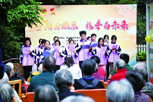 九九重阳节是我国尊老敬老的传统节日,为进一步弘扬中华民族爱老、敬老、助老的传统美德,培育和践行社会主义核心价值观,10月21日上午,共青团江北区委组织江北芳华青少年服务中心、重庆鲁能巴蜀中学校团委,走进长青社·凯尔慈怀·江北区观音桥社区养老服务中心(慈怀长者之家),开展慰问活动,与老人们一起欢度传统节日——重阳节。