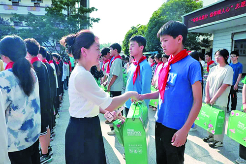 活动中,志愿者们走进华兴实验学校开展“青春志愿行 温情暖人心”活动,为104名住宿生送去夏凉被。
