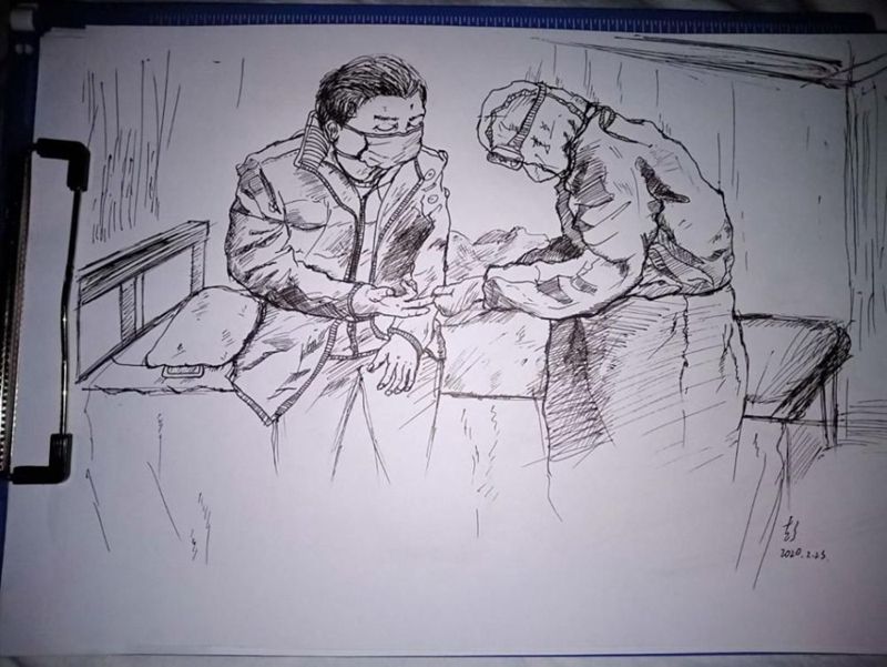 2月27日,来自贵州遵义的援鄂医疗队护士长李兰收到了患者送给她的一份珍贵礼物——一幅素描画。画中的李兰正在悉心照顾病患,穿着防护服的身影,充满着温暖的力量……