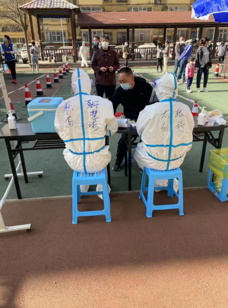 在采样现场,很多老师负责的是信息录入。为不耽误和影响核酸队伍的进度,大家似乎都达成了一种“默契”——尽量少喝水,省得跑厕所。采访中,很多老师表示,他们都是克服各种困难来当志愿者的,大家都盼望着疫情能早日结束。