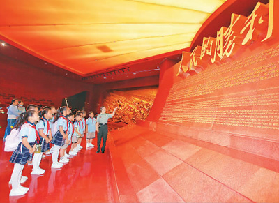 江苏省徐州市王场新村小学的少先队员在淮海战役纪念馆观展。  |