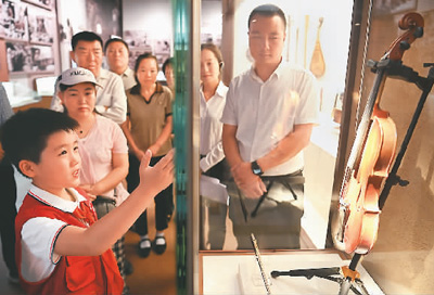 陕西省延安文艺纪念馆的“小小讲解员”正为参观者讲解馆内藏品。  |