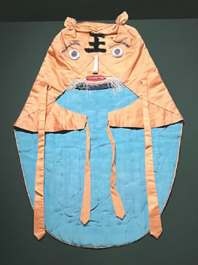 清代杏黄色缎虎头式棉风帽。 |