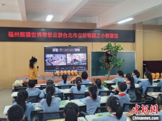 31日,海峡(福州)大熊猫研究交流中心、福州市湖滨小学、福州市乌山小学连线台湾台北市立动物园开展“两岸一家亲――福州熊猫世界带您云游台北市立动物园之小熊猫馆”科普活动。