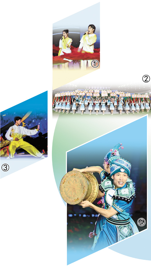 图①:11月15日,第一届学青会在广西南宁落幕。图为演员在闭幕式上表演。 |