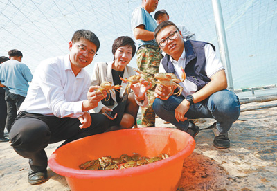 “现在我们每个人都‘走南闯北’,除了青蟹,还在西北试验混合养殖南美白对虾、鲻鱼、大黄鱼、黄姑鱼、蛏子等多种海鲜,助力农民增收效益再提高。”蒋小松说。