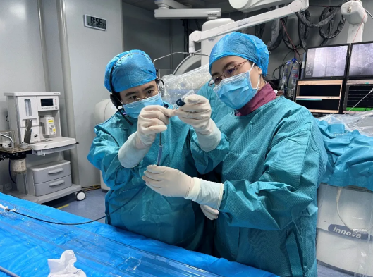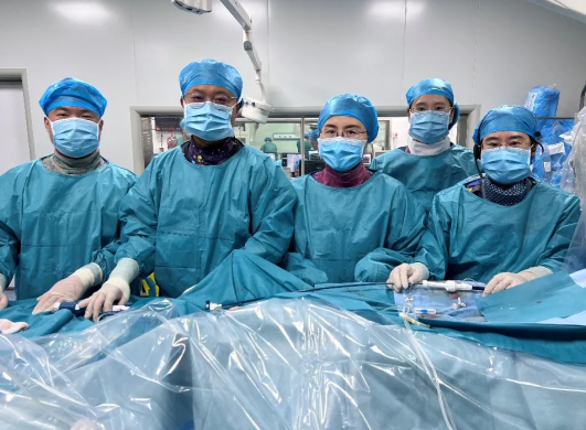 刘金秋教授、尹晓盟教授和于晓红教授在与患者和家属进行了充分的沟通后,为患者量身定制了缜密的手术方案。手术在局部麻醉下进行,通过股静脉穿刺,将小巧的起搏器通过导管植入到心腔内部,患者体表没有切口和植入物,体内没有导线,术后没有伤口疼痛,数小时后即可恢复正常活动,缩短了住院时间。