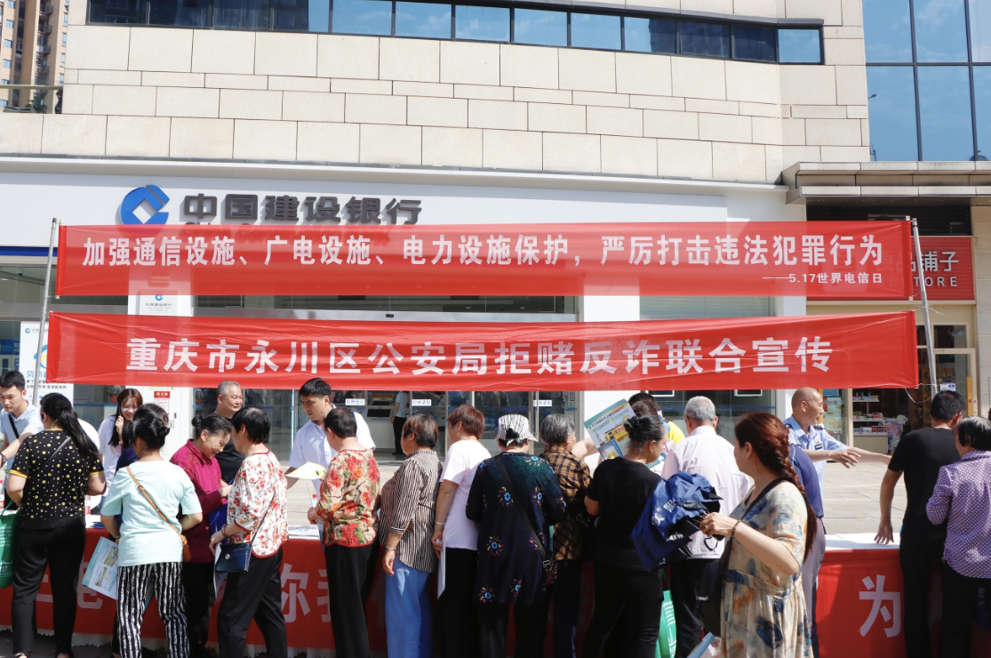 5月17日,永川区公安局联合区反诈办等多部门在华茂广场及文理学院开展5·17世界电信和信息社会日及拒赌反诈联合宣传活动。如果不法分子破坏